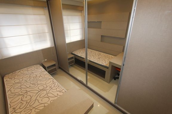Quarto de solteiro com cama de solteiro e guarda-roupa
